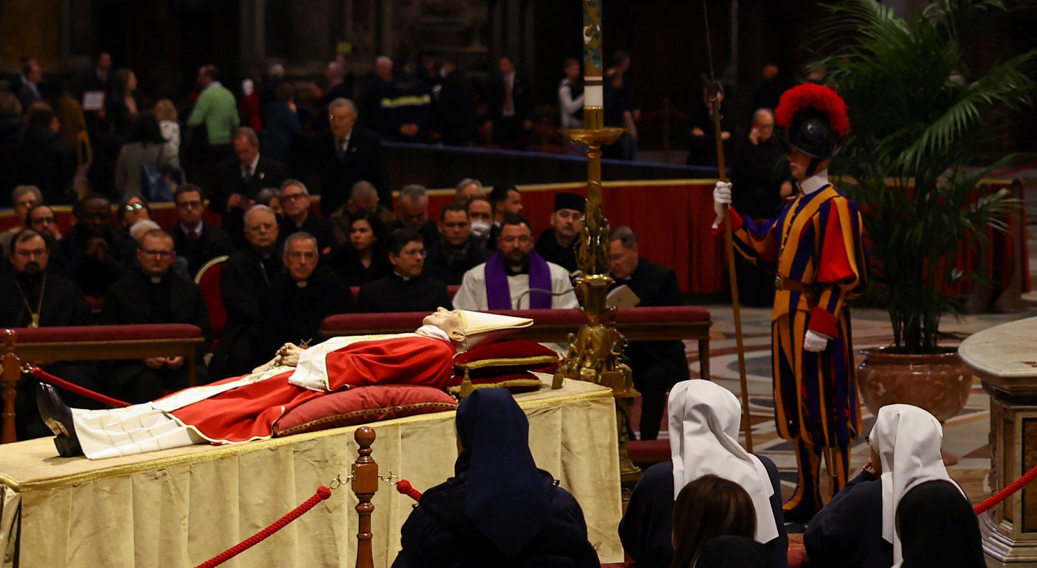Ao longo do dia, a basílica encheu-se de pessoas de todo o mundo que quiseram ver o pontífice pela última vez. A maioria eram padres, freiras e crentes de várias nacionalidades.