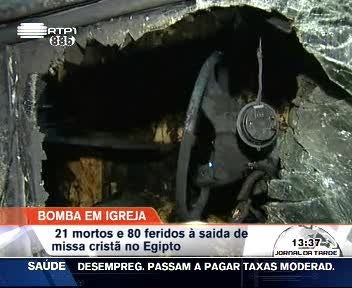 A explosão de uma bomba – cujo acto o ministro egípcio do Interior sugere ser responsabilidade de um extremista suicida - fez 21 vítimas mortais e outros 80 feridos. O engenho foi espoletado numa altura em que saíam da celebração de Ano Novo mais de um milhar de pessoas.
