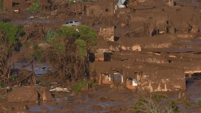 O lodo da barragem rompida destruiu a vila de Bento Rodrigues, no estado de Minas Gerais, e causou graves danos em outras cidades.