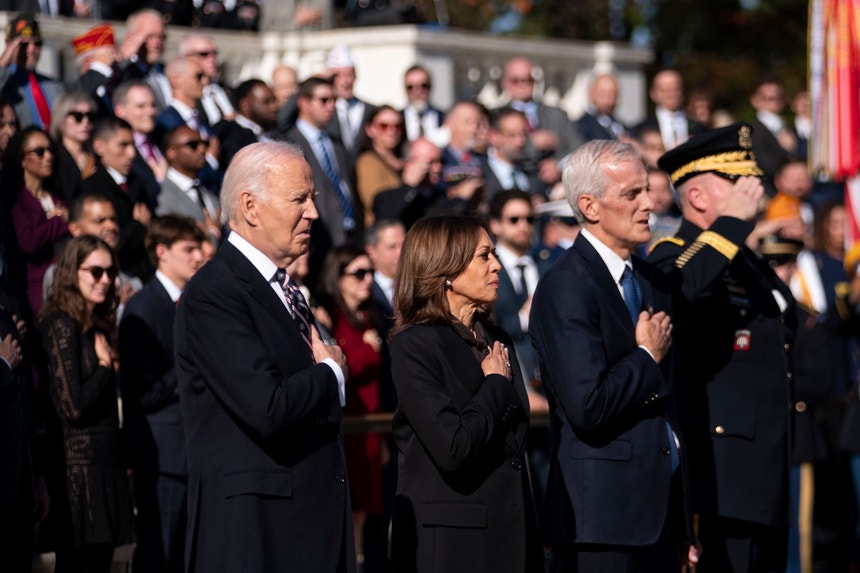 O Presidente dos EUA, Joe Biden, e a Vice, Kamala Harris, fizeram hoje a sua primeira aparição conjunta desde a derrota eleitoral democrata, celebrando o Dia dos Veteranos no Cemitério Nacional de Arlington.