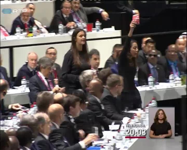 Durante o Congresso da FIFA estalou uma "guerra" improvisada entre as Federações de Israel e da Palestina. Manifestantes pró-palestinianas mostraram um cartão vermelho a Israel, reclamando a sua expulsão da FIFA. Os trabalhos foram também interrompidos por causa de um alerta de bomba.
