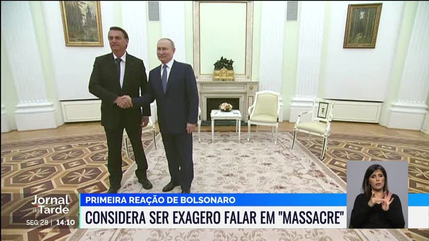 Na primeira reação à guerra na Ucrânia, Jair Bolsonaro revela que o Brasil deve permanecer neutro. O Presidente Brasileiro afirma ser um exagero quando se fala de massacre em território ucraniano.
