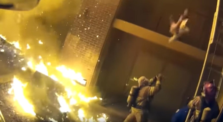 Os bombeiros de Dekalb estão a ser chamados de heróis depois da divulgação destas imagens. O que se vê é o bombeiro Scott Stroup a agarrar uma criança lançada pelo pai de um edifício em chamas. As imagens podem impressionar, mas sabemos agora que tudo correu pelo melhor.