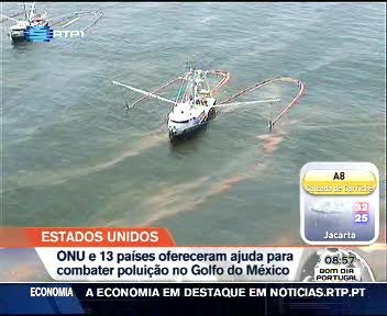 A BP conseguiu fechar um dos três furos por onde sai o petróleo que está a poluir o Golfo do México.