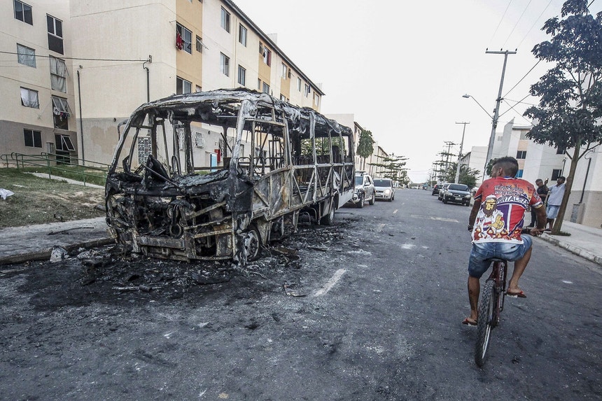 Foram incendiados autocarros e edifícios como bancos e esquadras. Houve ainda ataques a postos de abastecimento de combustíveis e supermercados. Já se contam pelo menos 90 ataques desde quarta-feira em 26 cidades do Ceará. Há estabelecimentos encerrados por toda a região e as pessoas evitam sair à rua.