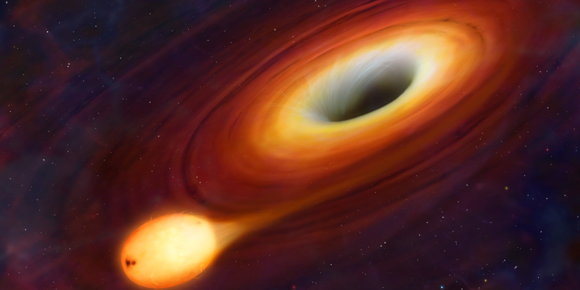 Certo é que, nem sempre duas estrelas morrem na mesma altura. Portanto, aquando da formação de um buraco negro por uma das estrelas, aquela que ainda está ativa é absorvida pela massa gravitacional da primeira.