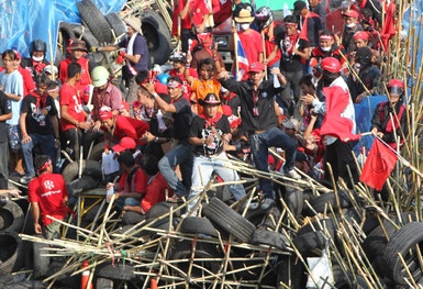 Jan/mar. 2009 - Os "camisas vermelhos", leais a Thaksin Shinawatra, multiplicam as manifestações contra o primeiro-ministro.