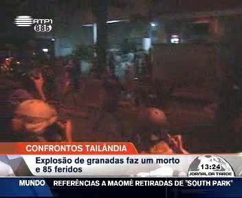 Explosão de granadas agudizam conflitoO conflito social e político agudizou-se entretanto e numerosos Estados recomendaram aos seus cidadãos que não viagem para aquele país do sudeste asiático.Quinta-feira, a explosão de granadas alegadamente lançadas por "camisas vermelhas" sobre os manifestantes pró-governamentais provocou um morto e 80 feridos.