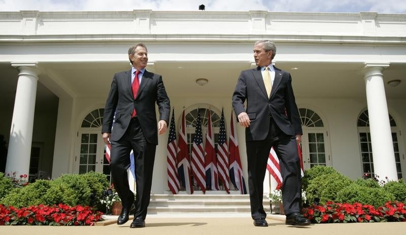 Tony Blair e George W. Bush na Casa Branca, em 2007, antes de uma declaração aos jornalistas. Foto: Kevin Lamarque/Reuters