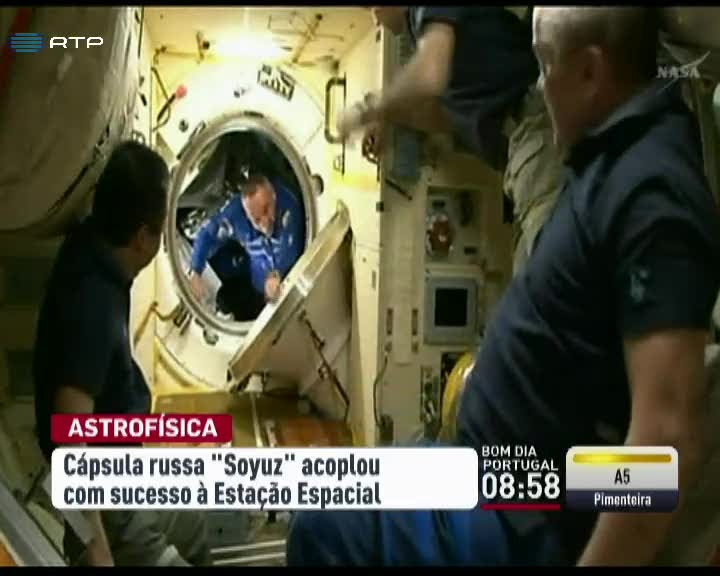 Os três astronautas partiram na terça feira de madrugada da base de Baikonur, no Cazaquistão. A viagem devia durar apenas seis horas, mas problemas técnicos atrasaram em quase dois dias a chegada à estação orbital.