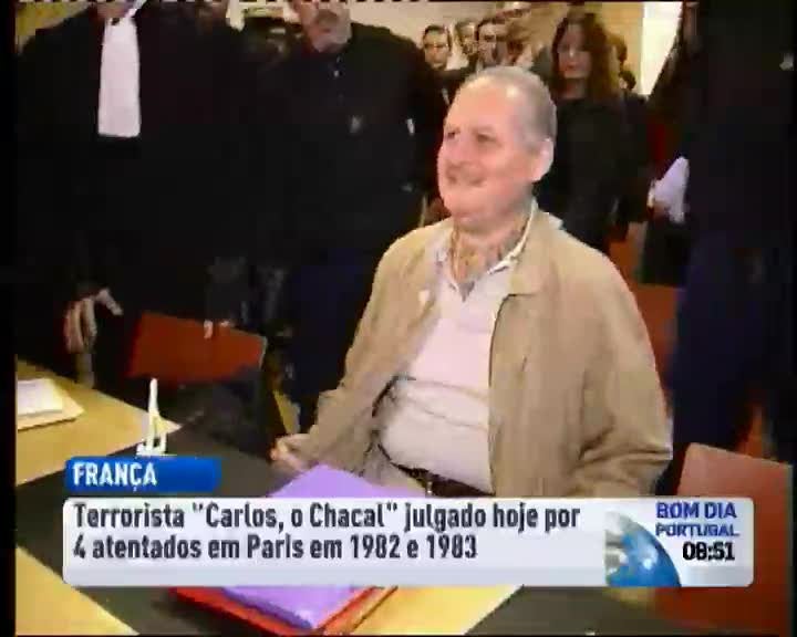 Em França, o terrorista venezuelano conhecido por "Carlos, o Chacal" volta hoje ao Tribunal Criminal de Paris. Vai ser julgado por quatro ataques em França em 1982 e 1983 que causaram 11 mortos e dezenas de feridos. Carlos, com 62 anos, foi condenado pela primeira vez pela justiça francesa em 1997. Cumpre prisão perpétua pela morte de três policias em Paris. Numa entrevista publicada num jornal venezuelano, o terrorista confessou ter realizado mais de uma centena de atentados.
