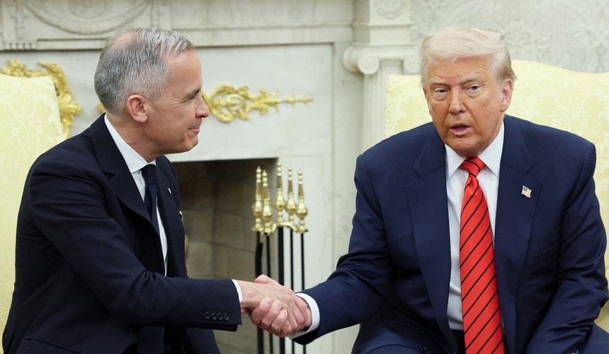 Mark Carney foi à Casa Branca explicar a Donald Trump que o Canadá "não está à venda, não estará à venda nunca" e Trump respondeu com uma piada: "nunca diga nunca". O presidente dos EUA voltou a manifestar o seu interesse ao longo do encontro em tornar o Canadá o 51.º Estados dos EUA, considerando que "seria realmente um casamento maravilhoso", embora reconhecesse que "são precisos dois para dançar o tango".