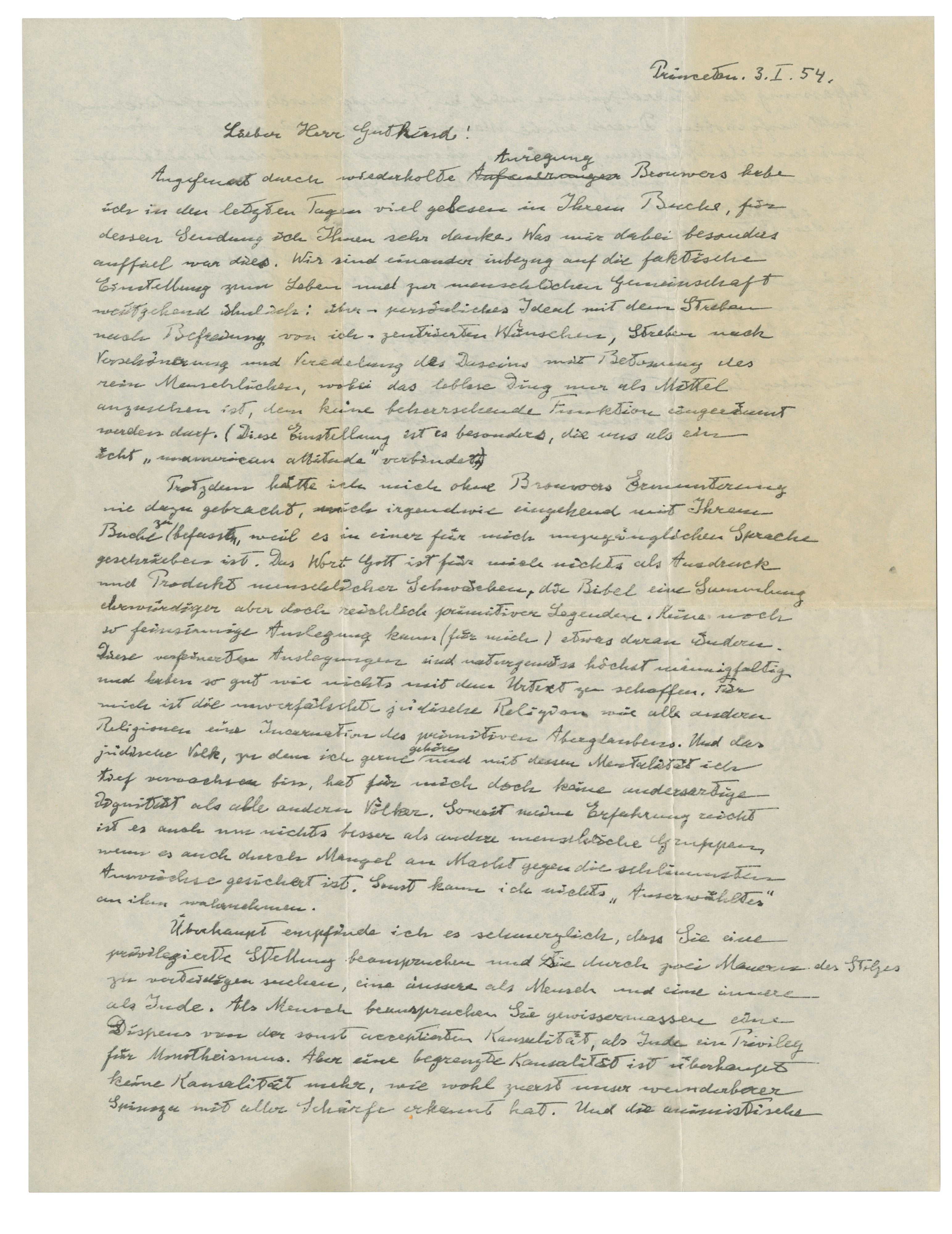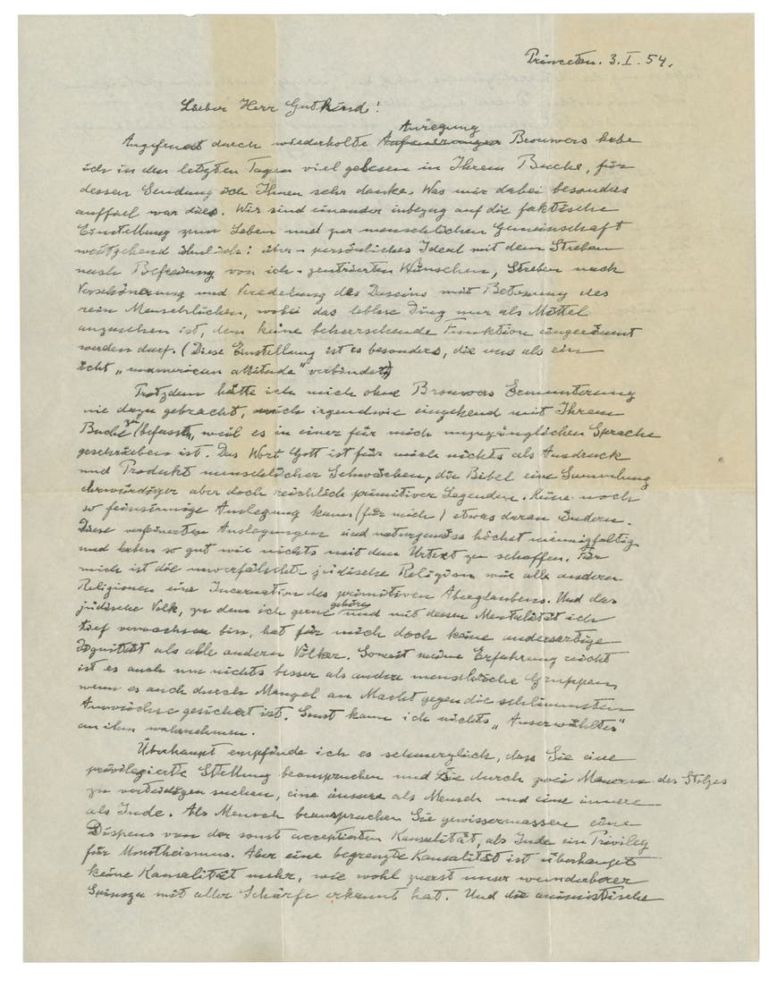 Einstein escreveu a carta em resposta ao livro Escolha a Vida: A Chamada Bíblica à Revolta, de Gutkind, e o documento encontrava-se entre os pertences deste autor até que, em 2008, foi leiloada pela primeira vez.