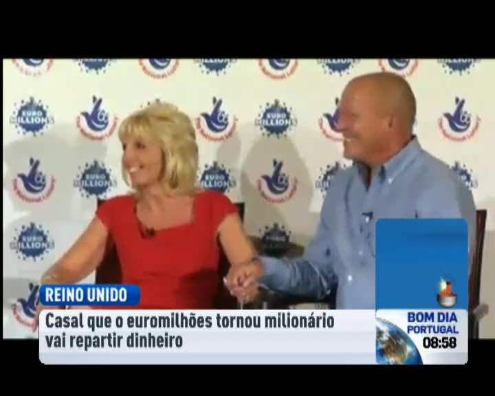 O casal britânico que ficou milionário após o sorteio do euromilhões vai distribuir o dinheiro por pelo menos 15 pessoas. Dave e Ângela ganharam 117 milhões de euros há uns meses atrás e pensam que é dinheiro a mais. Por isso, vão fazer milionários alguns dos familiares e amigos que os ajudaram no passado. Dave e Ângela planeiam casar-se e comprar uma casa em Portugal, onde já vivem os pais de Ângela.