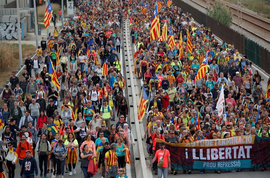 Na passada quarta-feira, milhares de manifestantes pró-democracia iniciaram uma “Marcha pela Liberdade”. Começam a chegar esta sexta-feira a Barcelona onde se concentram em defesa da libertação dos líderes independentistas que estão detidos.
