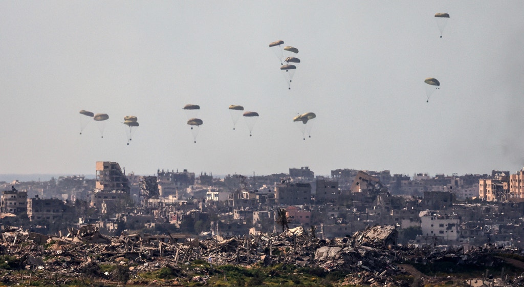 Os Estados Unidos e outros países, como a Jordânia e a França, têm feito lançamentos de ajuda alimentar por via aérea à Faixa de Gaza, sitiada por Israel, à medida que a crise humanitária se agrava.