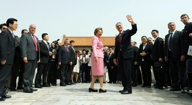 Num ambiente descontraído e em passo lento, o chefe de Estado, acompanhado da primeira-dama, visitou hoje a Cidade Proibida, na capital chinesa, um complexo que albergou o poder imperial chinês nas últimas duas dinastias, e depois de considerar não ser positiva a governação afastada do povo, congratulou-se pelo fim desse sistema.