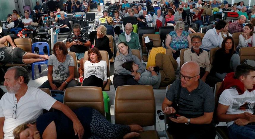 voos comerciais e deixando milhares de passageiros à espera de voo no