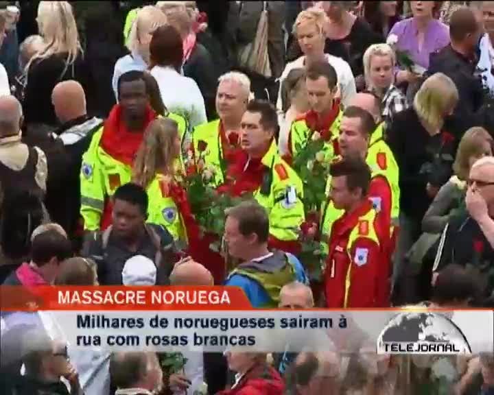 Falando à multidão que agitava rosas brancas e vermelhas, o primeiro-Ministro JENS STOLTENBERG disse que o mal podia matar pessoas mas não podia matar um povo. O príncipe herdeiro da Noruega participou também na manifestação para afirmar que ela era uma demonstração de amor.