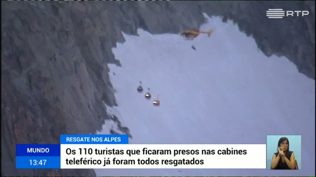 Cem turistas ficaram presos num teleférico nos Alpes suiços
