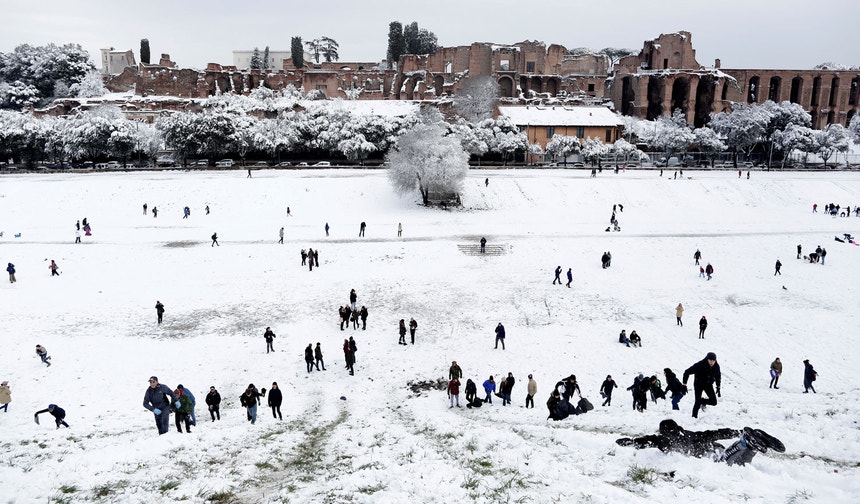 Itália, onde nevou em Roma e em Nápoles, ordenou o encerramento de escolas e de várias estradas no centro e no sul, cobertas de pelo menos 10 centímetros de neve.