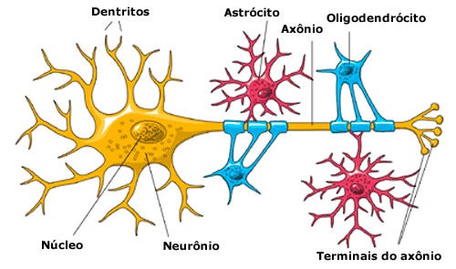 Já os astrócitos presentes no cérebro saõ de dois tipos: protoplasmáticos e fibrosos.