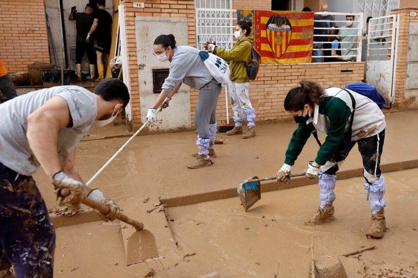 Há milhares de voluntários e de militares nos esforços para encontrar os desaparecidos nas inundações em Alfafar, em Espanha. A prioridade, segundo as autoridades, é encontrar os corpos das vítimas.