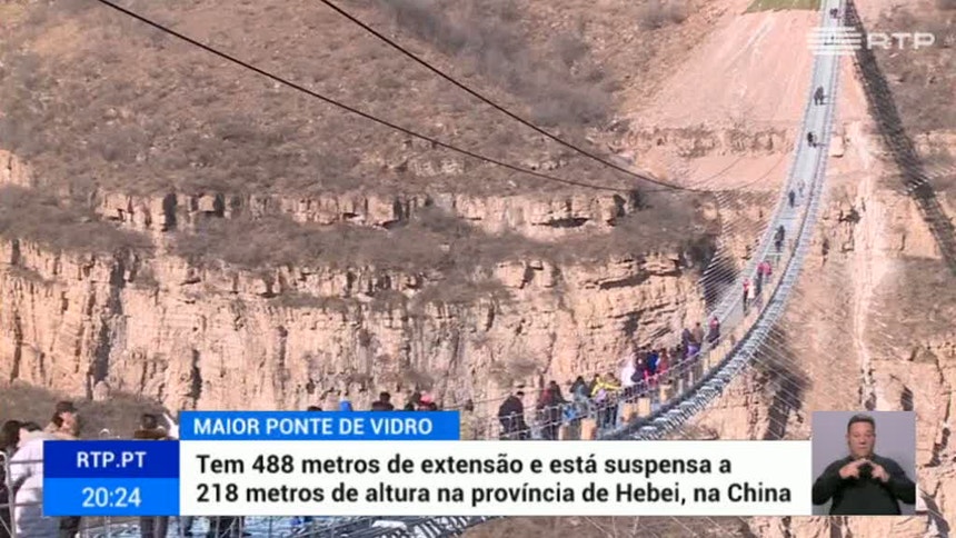A construção tem quase 500 metros de comprimento. Situada entre dois penhascos, a ponte tem 488 metros de extensão e é a mais recente atracção turística da província de Hebei, no norte da China.