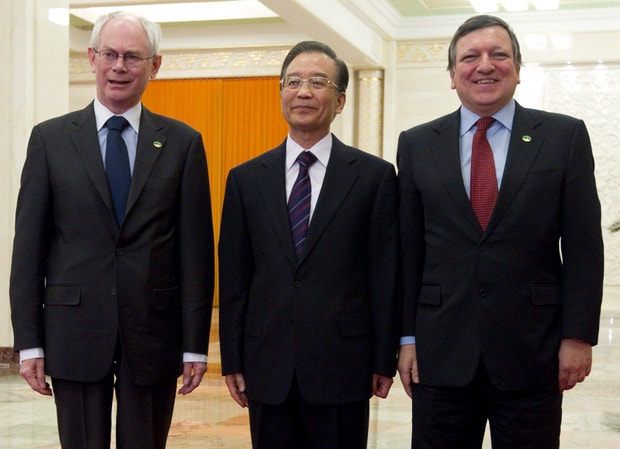 O primeiro-ministro chinês Wen Jiabao declarou que China e UE são parceiras globais e necessitam de trabalhar juntas, quando recebeu em Pequim o Presidente da União Europeia, Herman Van Rompuy e o Presidente da Comissão Europeia, Durão Barroso. Mas Pequim não se comprometeu para já quanto a investimentos no fundo de resgate europeu, um dos objetivos de Bruxelas.