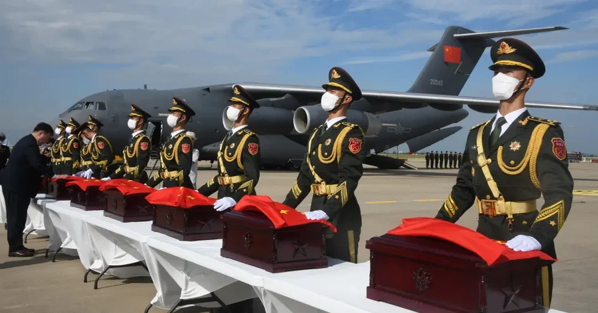 A maioria dos soldados chineses mortos na guerra - na qual Pequim enviou mais de dois milhões de combatentes em apoio à Coreia do Norte - permanece sepultada em território norte-coreano. Dados oficiais chineses indicam cerca de 197.600 mortos, embora estimativas ocidentais apontem para números mais elevados.