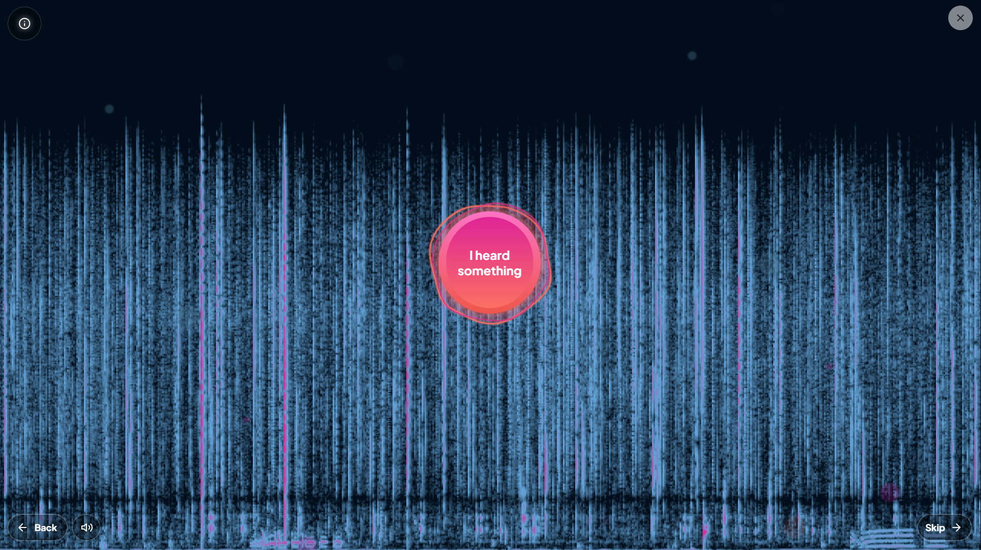 Imagem visual de uma gravação sonora marinha. Os pontos mais rosados são registos sonoros da vida animal, que o participante desta plataforma vai ter de identificar. Creditos Google Artes & Culture - Calling in Our Corals