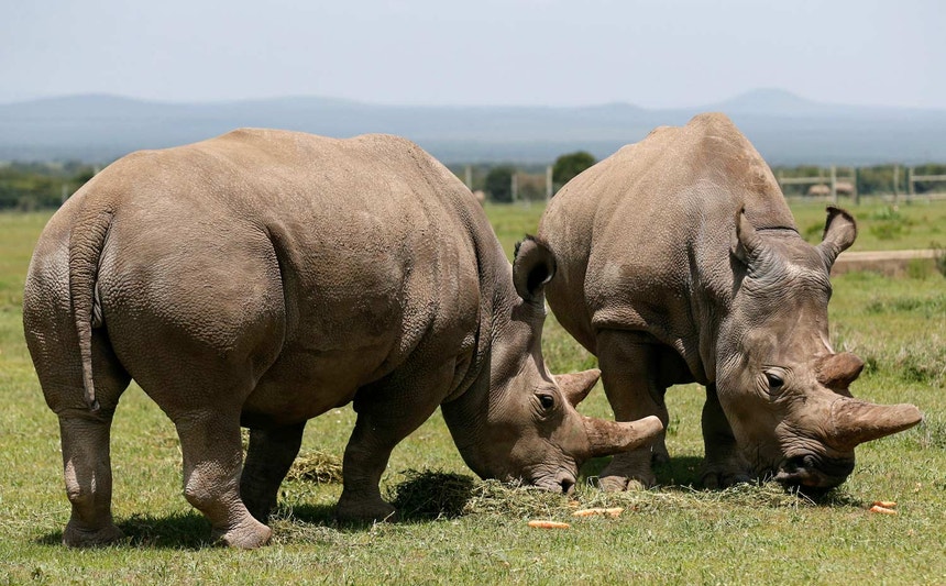 Um grupo de cientistas conseguiu criar dois embriões de rinoceronte branco do norte, o que poderá evitar ou adiar a extinção desta espécie. A fecundação foi realizada in vitro através dos óvulos das únicas duas fêmeas existentes no mundo e dos espermatozóides de machos já falecidos.