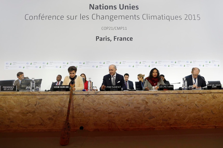 A emprestar um cunho histórico ao resultado de sucessivas e prolongadas maratonas negociais em Paris, Laurent Fabius sentou-se entre o Presidente francês, François Hollande, e o secretário-geral das Nações Unidas, Ban Ki-moon, no momento de anunciar a obtenção de um texto final de acordo. O ministro francês não ocultou a emoção.