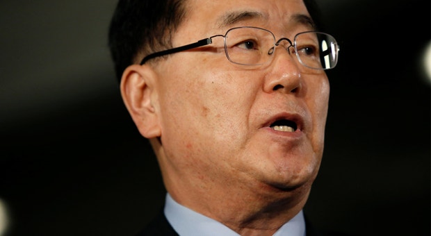O diretor do gabinete de Segurança Nacional da Coreia do Sul, Chung Eui-yong, que liderou a delegação sul-coreana enviada a Washington, entregou ontem a Trump uma carta assinada na segunda-feira por Kim Jong-un.
