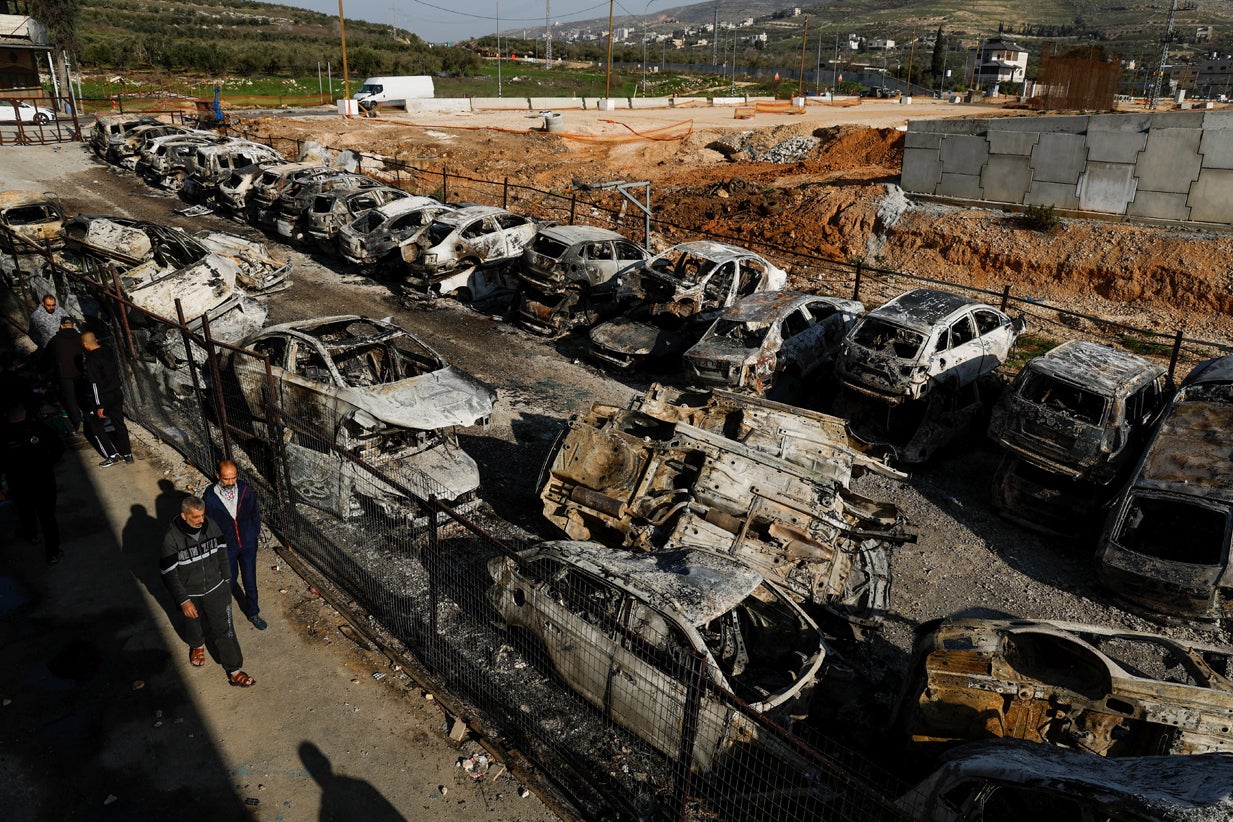 Carros de residentes palestinianos incendiados em Hawara | Ammar Awad - Reuters