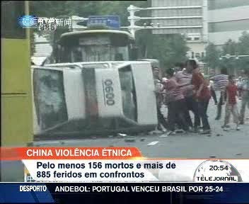 Imagens de pessoas a serem atacadas por manifestantes fortaleciam na televisão a perspectiva do Governo chinês, que atribui a responsabilidade pelos violentos confrontos ao movimento dissidente uighure no exílio, garantindo que os líderes no estrangeiro lançaram recentemente apelos via Internet para que os membros da etnia fizessem "algo em grande".
