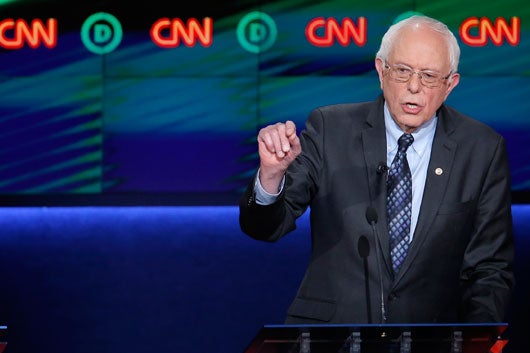 Apresentando um semblante ansioso, pouco comum no candidato, Bernie Sanders mostrou agressividade contra a adversária, apesar de não ter atingido a animosidade que se constatou nos debates republicanos.