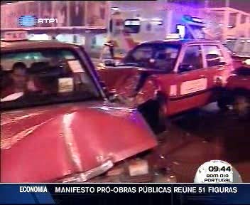 Um choque em cadeia envolvendo vários táxis provocou uma confusão em Hong Kong. Depois de socorrido um primeiro ferido, na estrada, os paramédicos preparavam-se para assistir um dos condutores, que se pôs em fuga.