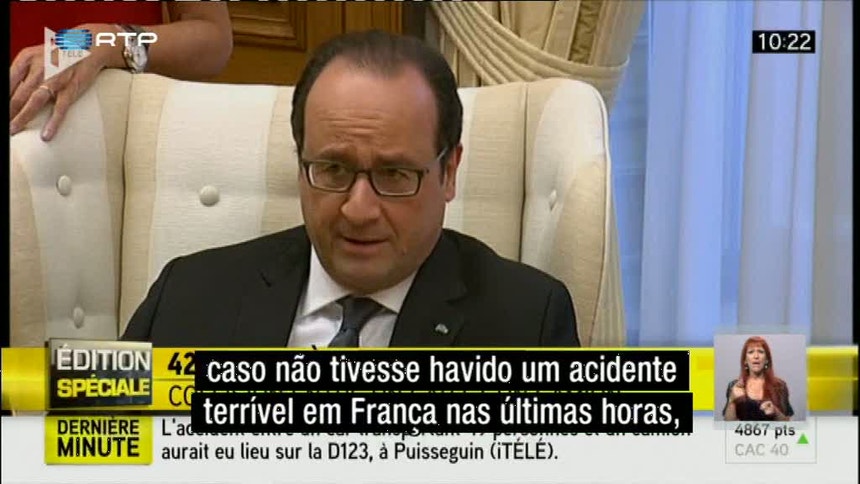 “O governo francês está totalmente mobilizado para esta terrível tragédia”, disse François Hollande, a partir de Atenas, onde se encontra numa visita oficial.