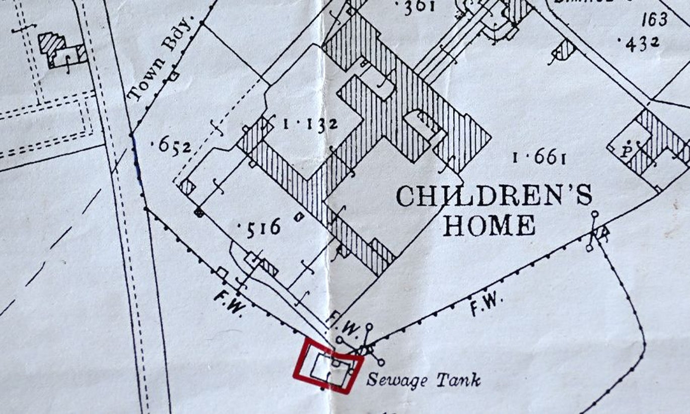 Ao comparar a localização nas plantas antigas encontrou uma estrutura designada por “tanque de esgoto” (Sewage Tank). De acordo com a investigação de Corless este tanque tinha sido desativado em 1937.