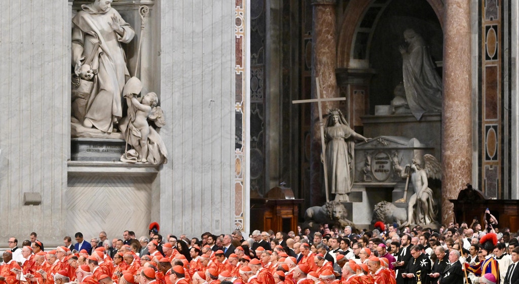 Antes do início do Conclave, na tarde desta quarta-feira, os cardeais participam numa missa celebrada pelo cardeal decano do colégio cardinalício, Giovanni Battista Re, na Basílica São Pedro. Os cardeais da Igreja latina vestem trajes vermelhos, simbolizando o sangue de Cristo e dos mártires. E os cardeais das Igrejas orientais usam trajes próprios.