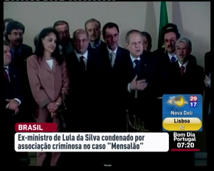 Há novas decisões do Supremo Tribunal Federal brasileiro no caso "mensalão". O coletivo de juízes condenou o antigo chefe da Casa Civil de Lula da Silva por associação criminosa. José Dirceu já tinha sido considerado culpado pelo crime de corrupção ativa no início de outubro. Foram também condenados pelo crime de associação criminosa o ex-presidente e o ex-tesoureiro do Partido dos Trabalhadores, além de outros sete arguidos.