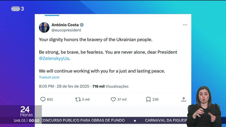 Depois do que se passou na Casa Branca, os lideres europeus publicaram mensagens de apoio ao presidente ucraniano. De todos os que se manifestaram, apenas Viktor Orban foi em sentido contrário e agradeceu a Donald Trump.