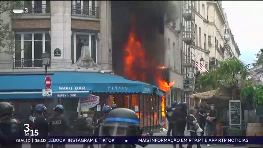 São os mais recentes incidentes a marcar esta quarta-feira de protesto em França e que foram acompanhados em direto na RTP3.