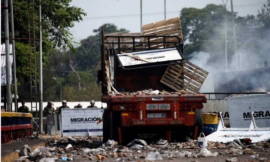 A tensão junto à fronteira permanece desde sábado, quando dois camiões com ajuda humanitária foram impedidos de avançar na fronteira da Venezuela pelo exército de Caracas.