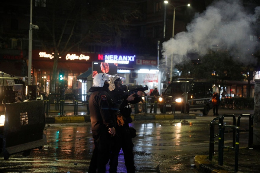 A polícia respondeu com gás lacrimogeneo e canhões de água, o que gerou confrontos com os manifestantes.