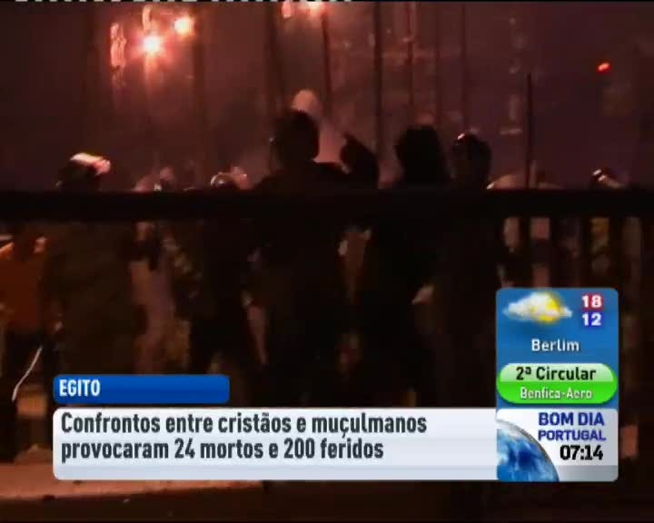 Confrontos no Egipto entre cristãos e muçulmanos fizeram esta noite pelo menos 24 mortos e mais de 200 feridos. A violência começou no Cairo e chegou a Alexandria, na sequência de uma manifestação contra um ataque a uma igreja na semana passada.