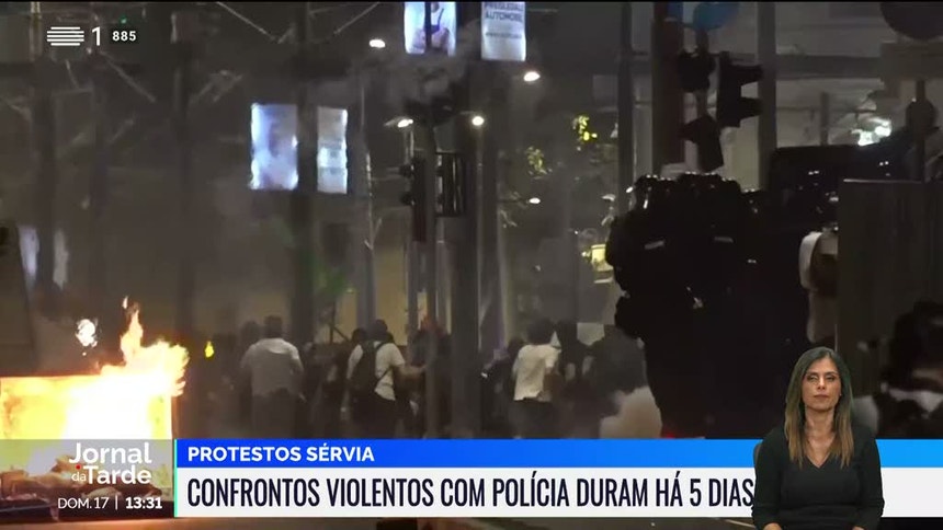 Confrontos violentos entre manifestantes e polícia abalaram pela quinta noite consecutiva as principais cidades sérvias. Os manifestantes atacaram as sedes do partido do Presidente Aleksandar Vucic e exigem eleições.