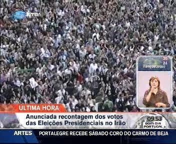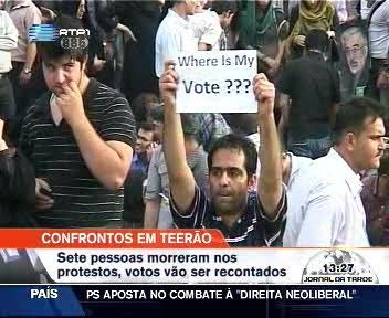A vitória folgada que valeu a reeleição ao Presidente Ahmadinejad está ser contestada por toda a oposição. Todos os dias existem manifestações em Teerão por causa de alegadas fraudes eleitorais.
