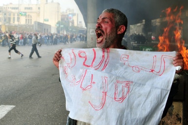 Nas grandes cidades egípcias, os manifestantes incendiaram pneus e veículos da polícia, que respondeu com granadas de gás lacrimogéneo, canhões de água, bastões, balas de borracha e, em alguns casos, fogo real. Ahmad Salah, um manifestante egípcio de 26 anos ouvido pela Associated Press, emprestou a voz à revolta diante da repressão das autoridades: "Não posso acreditar que a nossa própria polícia e o nosso próprio Governo continuem a bater-nos desta maneira. Estou aqui há horas, fui gaseado e continuo a avançar. Este é um Governo cobarde e que tem de cair. Vamos assegurar-nos disso".
